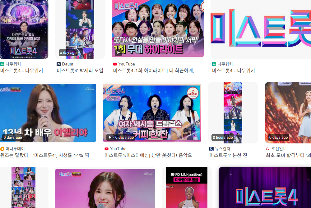 TV CHOSUN 미스트롯4는 매주 목요일 밤 10시에 방영됩니다. 매회 새롭게 공개되는 무대와 평가 결과가 긴장감을 높이고 있습니다.
